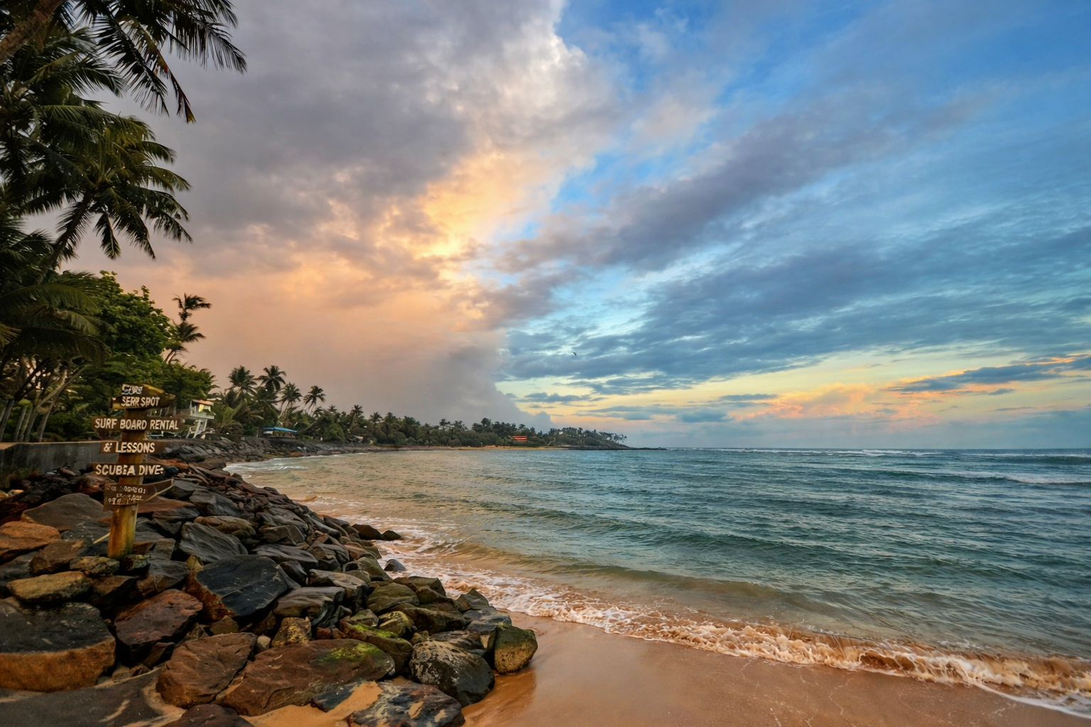 Beginners can join soft-wave lessons near the harbor, while nearby Weligama offers bigger breaks. Turtle encounters are best with snorkels near calmer reef pockets.